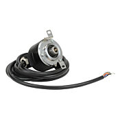 Koyo TRD-N series incremental (quadrature) rotary encoder, medium duty, 5-30 VDC, radial exit, push-pull (totem) output, 120 ppr, 8mm hollow shaft, 50mm diameter body, IP65, 6.5ft/2m cable length, pigtail.