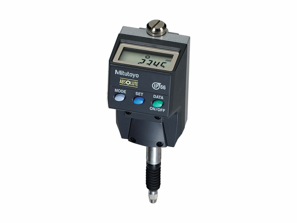 The Mitutoyo ABS ID-B Series digital indicator features a back-plunger style body that rotates up to 180 degrees for taking measurements from different directions. The body mounts to a leveling machine tool table or inspection jigs and its slim design allows for use in restricted spaces where graduations of standard gages are difficult to read. The ID-B indicator measures linear distances up to 5mm (metric only) or 5.6mm/.22” (Inch/Metric models), and some models a selectable resolution with accuracy of up to +/-0.003mm/.00012”.