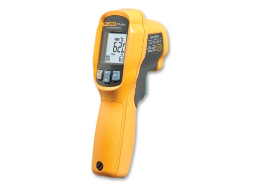 The Fluke 62 MAX infrared thermometer can measure the surface temperature in a temperature range of -30~500 . By measuring the infrared energy radiated from the target, temperature measurements can be done without having to touch the surfaces. Moreover, the measurements of the 62 MAX have a high accuracy over the entire spectrum. The maximum Distance to Spot Size Ratio (D:S) of the thermometer is 10:1, which means that at a distance of 10 metres, the thermometer performs a measurement over a surface with a diameter of 1 metre.