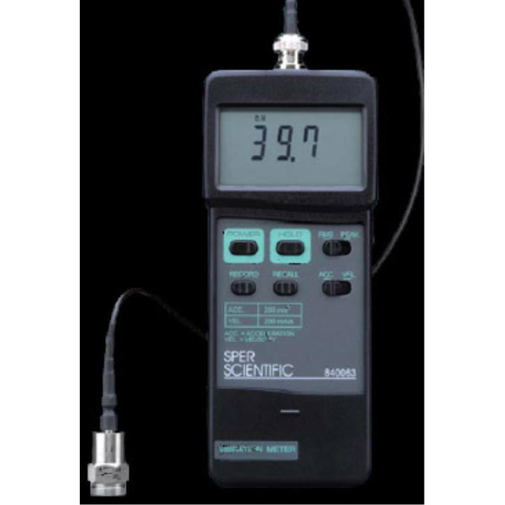 The level of vibration is a useful guide to the balance, alignment and general condition of pumps, motors, and other machinery. Poor balance, misalignment and looseness results in higher levels of vibration and indicates maintenance is required for operational as well as safety reasons. Measures velocity and acceleration. The large display indicates RMS, Peak, min-max, hold, and low battery. Features auto power off and an RS232 computer interface. Comes ready to use in a foam-lined, hard-shell carrying case, with a detachable strongly magnetic probe, 9V battery and instructions.