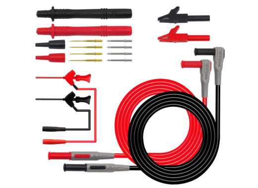 Набор пробников для мультиметров довольно обширен и состоит из 18 штук. В комплект щупов входят: штекеры типа «банан», сменные щупы и тестовые штифты, зажимы «крокодил», тестовый крючок IC и зажимы SMD.