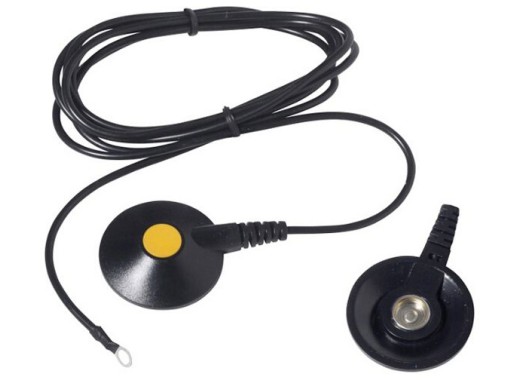 Черный кабель длиной 4,5 метра. На одном конце находится гнездовой разъем диаметром 10 мм с дополнительной защитой диаметром 43 мм. На другом конце имеется шина 4 мм, которую можно подключить, например, к винту с заземлением.