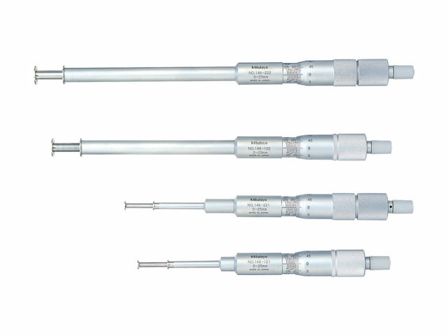 The Mitutoyo groove micrometer»s two-direction ratchet stop provides a constant measuring force on the spindle to ensure accurate, repeatable measurements of groove depths and widths. The sleeve and spindle contain measurements for both inside and outside diameters laser etched for precise, easy reading.