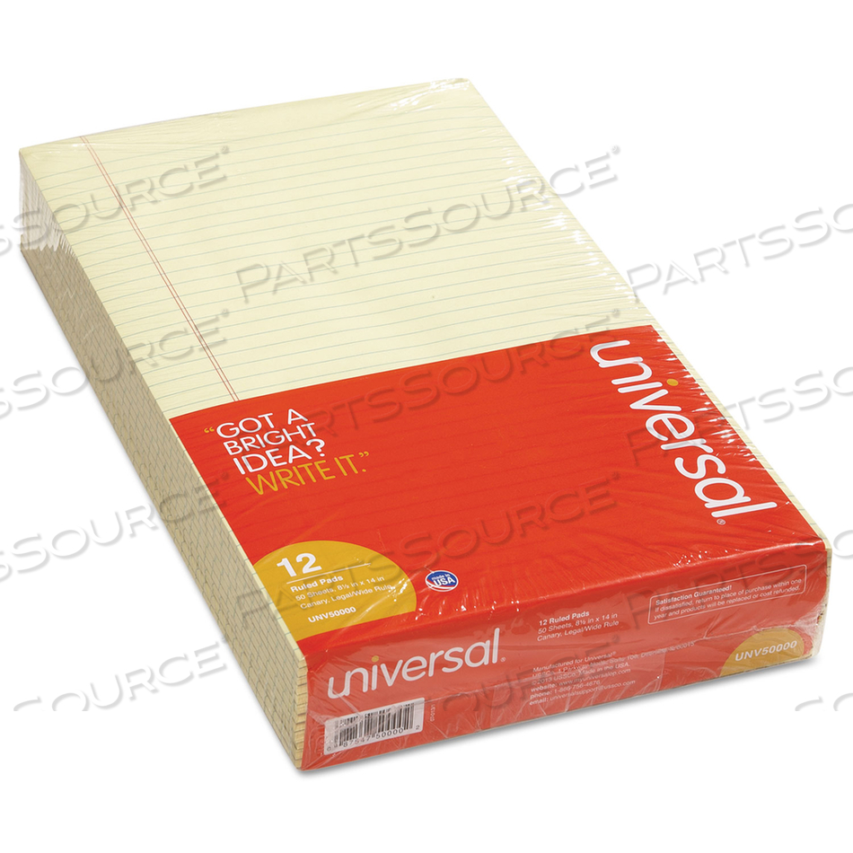 КЛЕЕВЫЕ ВЕРХНИЕ ПОДУШКИ, ШИРОКИЕ/LEGAL RULE, 50 КАНАРЕЙНО-ЖЕЛТЫХ 8,5 X 14 ЛИСТОВ, ДЮЖИНА