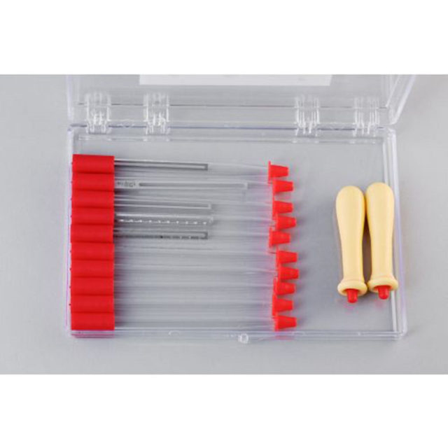 A useful tool for multi grid staining. You may say goodbye to precipitation and dust if the directions are carefully followed. The Grid Stick is comprised of a thin yet robust alloy that will not react with common organic solvents or stains. The stick itself is 4 mm wide and 75 mm long, with a groove in the centre and small undercut notches on one side to allow easy grid removal. Each stick has a little spot on the top for identification.