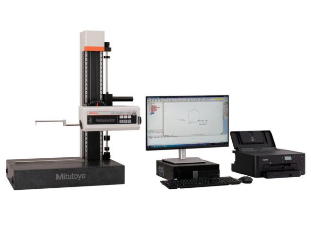 The Mitutoyo Contracer CV-2100 contour measuring instrument provides highly accurate, highly efficient measurements that is easy to set up. This measuring instrument is equipped with a drive unit inclination mechanism that enables inclined-plane measurement to accurately measure difficult to measure workpiece features. The Digital ARC Scale directly tracks the arc trajectory of the stylus tip so the most accurate compensation can be applied to the scale output for both higher accuracy and resolution.