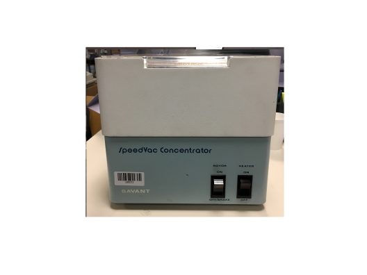 The Savant Speed Vac Concentrator SVC100H-115 was made for solidification of biological solutions in micro-tubes. The rotor holds the tubes and vials at a fixed angle to force the solute to the bottom and maximize surface area exposed to evaporation. When working with hazardous materials or those in the micro-gram, nano-gram or smaller ranges Centrifugal force is applied by the rotor (spinning up to 17,000 RPM), concentrates all the sample at the bottom of the tube, assuring almost 100% sample recovery. The sample materials do not settle on the sides of the tube so the smallest amount of diluent is required to recover the sample.