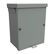 Корпус Hammond, NEMA 3R, 8 x 6 x 4 дюйма (ВxШxГ), настенное крепление, с выбивными отверстиями, оцинкованная сталь, серый цвет ANSI 61, порошковое покрытие, крышка для винтов, защелка для навесного замка и скоба.