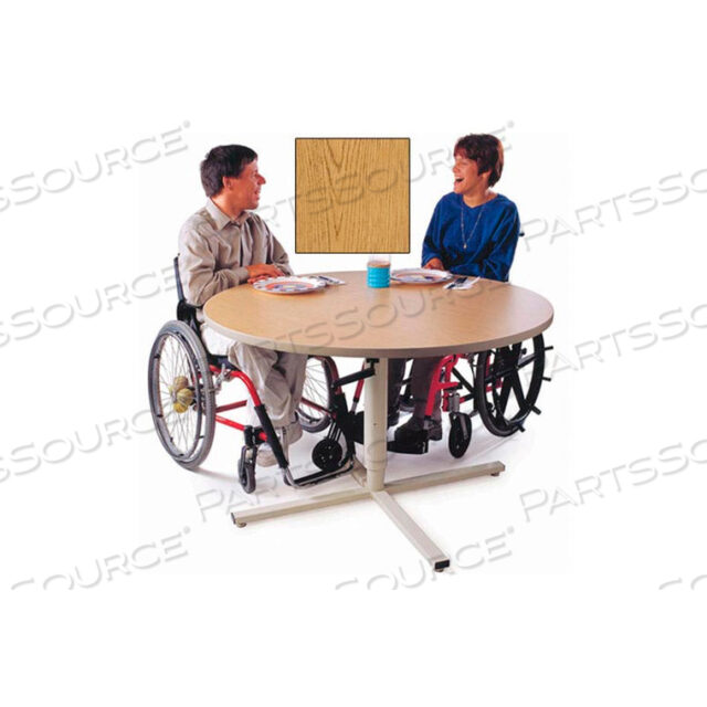 РЕГУЛИРУЕМЫЙ ПО ВЫСОТЕ КРУГЛЫЙ СТОЛ ДЛЯ ГРУППОВОЙ ТЕРАПИИ — OAK