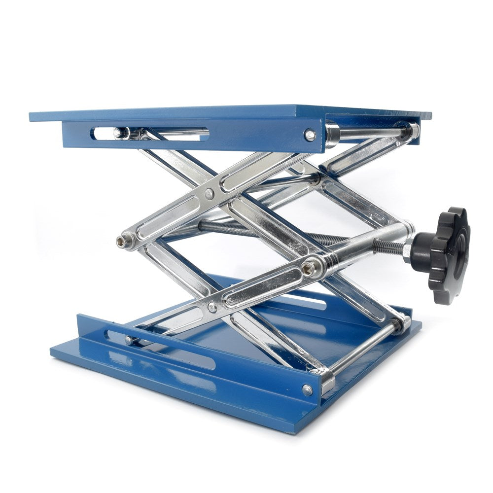 These jacks are designed to lift and support laboratory equipment like baths, stirrers, heaters, flasks etc. Re-fitting a diffusion pump using a jack becomes a simple task. The height is easily adjusted with a large knob.