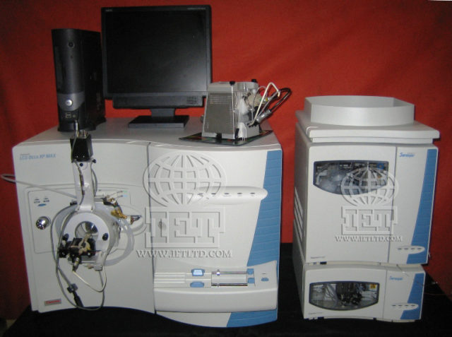 Refurbished Thermo Finnigan LCQ Deca XP Max LC/MSn complete with nanospray source, ESI source, and Xcalibur PC workstation. OPTIONAL: Nano ESI Housing & probe, Eksigent NanoLC 1D-500 (p/n nlc-1d-500) with Spark 920 autosampler, Thermo Finnigan Surveyor autosampler(p/n srvyr-as) and pump (p/n srvyr-mpump), Peak Scientific Nitrogen Generator NM30LA.