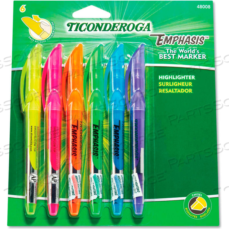КАРМАННЫЕ МАРКЕРЫ EMPHASIS, С КОНЧИКОМ В ФОРМЕ СТАНКА, РАЗНЫЕ ЦВЕТА, 6 ШТ./НАБОР