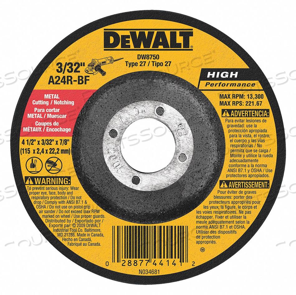 МЕТАЛЛОРЕЗНОЙ И ВЫРЕЗНОЙ КРУГ ТИП 27 4-1/2 ДИАМ. 24 GRIT 24 GRIT