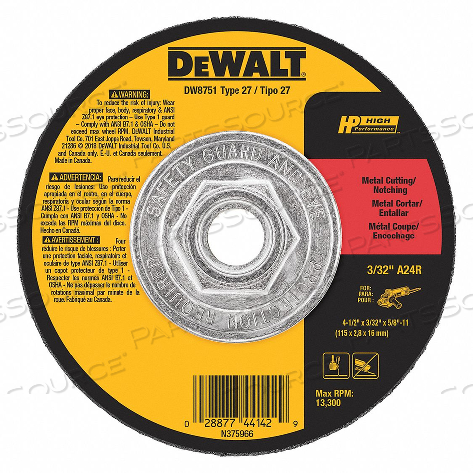 ДИСК ДЛЯ РЕЗКИ И ВЫРЕЗКИ МЕТАЛЛА ТИП 27 ДИАМ. 4-1/2 24 ЗЕРНИСТЫЙ ОКСИД АЛЮМИНИЯ