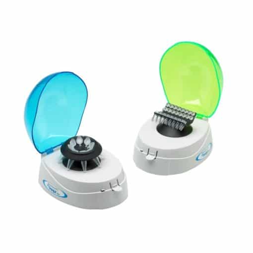 Product Description Clik-N-Lok INSTANT rotor attachment Eight position microtube rotor Storage compartment for PCR rotor & 0.5ml adapters Near silent operation Decelerates in just one second Four position PCR strip rotor The MyFuge Mini centrifuge is a personal centrifuge that virtually fits in the palm of your hand. Ideal for quick spin downs of microtubes and PCR tubes, the MyFuge is extremely easy to use. Simply close the lid and the rotor instantly reaches 6,000 rpm. Open the lid, and the rotor quickly decelerates to a stop for removing samples. An increased capacity, eight-position microtube rotor is included and comes installed. Also included is a second rotor for 0.2ml PCR tubes and strips which is stored (together with the rotor removal key) in a convenient compartment on the bottom of the centrifuge. When the rotor is not in use, storage in this compartment prevents loss or misplacement of the rotor. Specifications Speed 6,000rpm / 2,000xg Capacity 8 x 1.5/2.0ml 32 x 0.2ml 4 x PCR Strips Dimensions 5.7 x 6.9 x 4.5 in. (14.5 x 17.8 x 11.4 cm) Weight 2.2 lbs / 1kg Electrical Universal Voltage, 100 to 240V, 50-60HZ, 250W Warranty 2 Years
