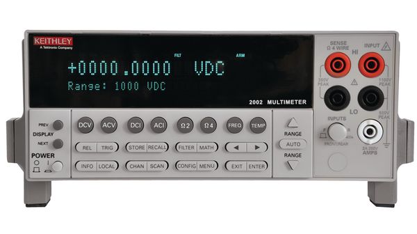 Keithley 2002 предлагает разрешение 8 ½ разряда и базовую погрешность DCV 0,0018 %, предлагая исключительное разрешение, точность и чувствительность. Этот высокопроизводительный цифровой мультиметр не только обеспечивает технические характеристики, обычно присущие только приборам, которые стоят на тысячи дороже, но также предлагает широкий спектр функций, которые обычно не доступны в цифровых мультиметрах. Для большей гибкости встроенный слот для карты на задней панели позволяет установить дополнительную карту мультиплексора для многоточечных измерений.