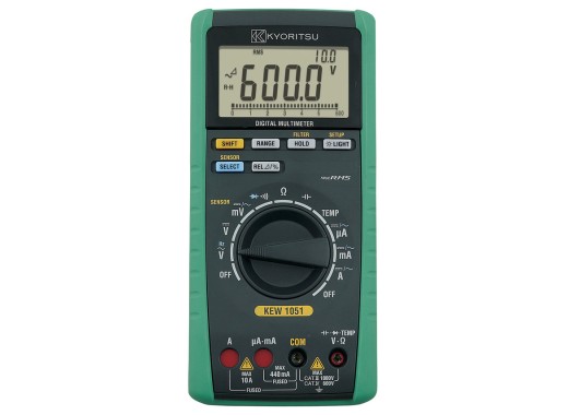 Kyoritsu 1051 — это профессиональный полноценный мультиметр True-RMS, который может измерять напряжение до 1000 В / 10 А. Универсальный мультиметр способен измерять напряжение, ток, сопротивление, емкость и частоту. и даже температура. Большой ЖК-дисплей с оранжевой светодиодной подсветкой обеспечивает идеальную читаемость даже в условиях низкой освещенности.