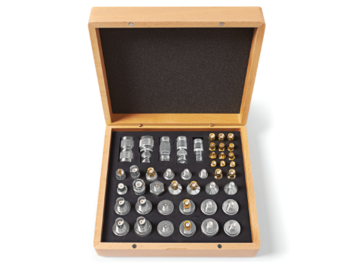 Этот набор адаптеров от Tekbox содержит 44 наиболее часто используемых коаксиальных адаптера 50 Ом и поставляется с деревянным ящиком для хранения.