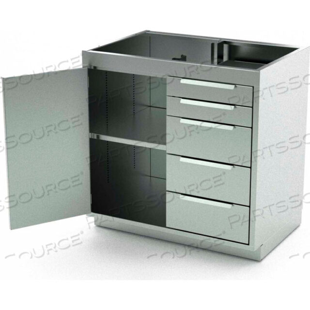 ШКАФ ИЗ НЕРЖАВЕЮЩЕЙ СТАЛИ, 1 ДВЕРЦА НА ШАРНИРАХ, 1 ПОЛКА, 5 ЯЩИКОВ, 48 Ш X 21 Г X 36 В
