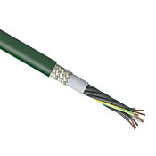 Гибкий многожильный кабель управления igus, 7 проводников (включая заземление), 0,50 мм2 (20 AWG), изоляция жил TPE, экранированный, оболочка из ПВХ, зеленый, нарезанный по длине.