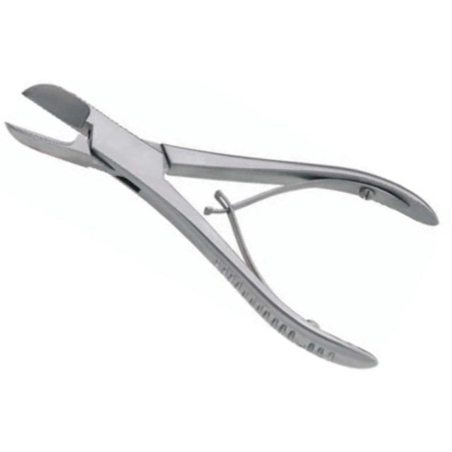 These 200mm bone shears have a serrated grip and scooped blade section.