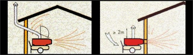 У этого типа выхлопные газы отделены от горячего воздуха. Это обязательно при обогреве жилых помещений (в некоторых типах выхлопные газы смешаны с горячим воздухом).