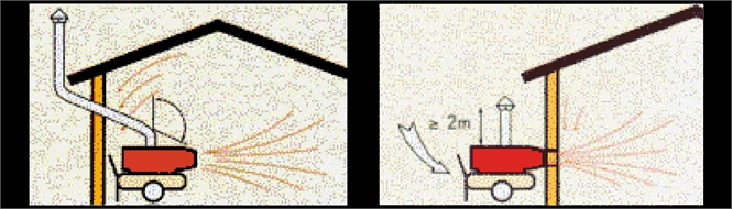 - Его можно поместить внутрь, чтобы повторно нагреть тот же воздух, в в этом случае выхлопные газы должны быть направлены наружу с помощью выхлопной трубы.