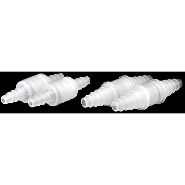 PP non-return valves with nitrile rubber (NBR) valve discs. Max. operating pressure 2 bar.