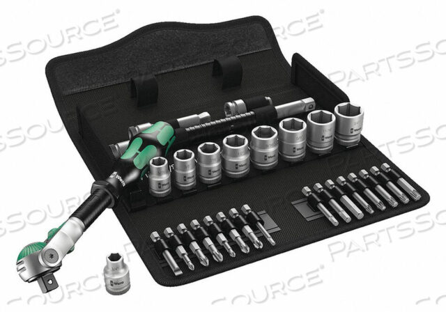 (16) бит, (9) гнезд, удлинитель 8 дюймов, адаптер для бит, портативный кейс, скоростной трещотка, удлинитель с качающимся лезвием