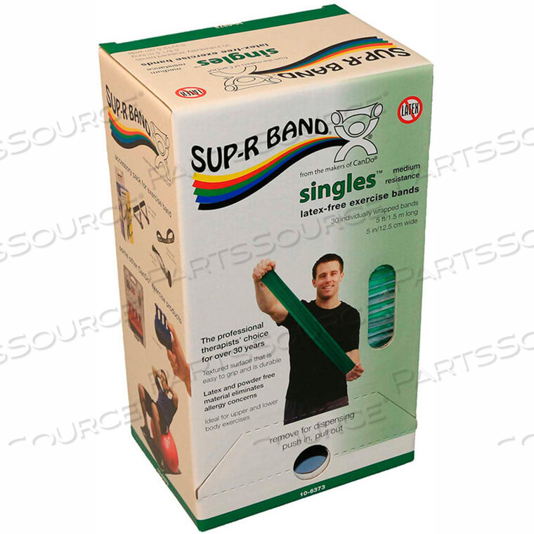 SUP-R BAND LATEX FREE EXERCISE BAND, 5 STRIPS, GREEN, 30 STRIPS/BOX