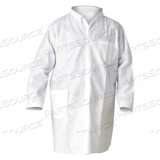 ЛАБОРАТОРНЫЕ ХАЛАТЫ A20 С ЗАЩИТОЙ ОТ ЧАСТИЦ, ЗАСТЕЖКА-КНОПКА/ОТКРЫТЫЕ ЗАПЯСТЬЯ/КАРМАНЫ, ОЧЕНЬ БОЛЬШИЕ, БЕЛЫЕ, 25 ШТ./КОРОБКА