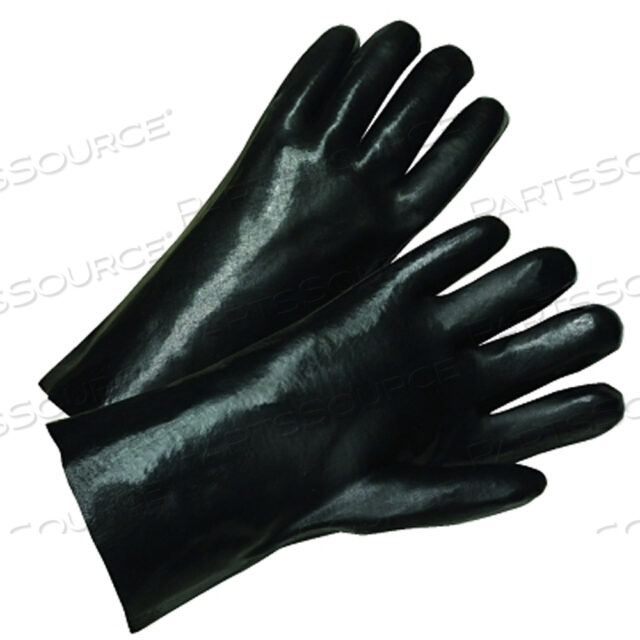 ПЕРЧАТКИ С ПОКРЫТИЕМ ПВХ, СТАНДАРТНЫЙ ГЛАДКИЙ ЗАХВАТ, ПОДКЛАДКА ИЗ ХЛОПКОВОГО ТРИКОТАЖА, 12 ДЮЙМОВ, БОЛЬШИЕ, ЧЕРНЫЕ