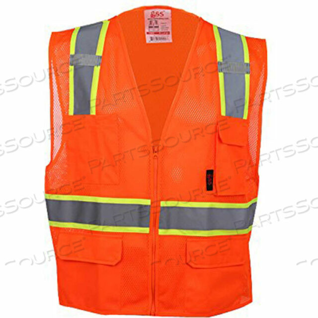 1502 МНОГОЦЕЛЕВОЙ КЛАСС 2 ДВУХЦВЕТНЫЙ СЕТЧАТЫЙ ЖИЛЕТ НА МОЛНИИ С 6 КАРМАНАМИ, ОРАНЖЕВЫЙ, БОЛЬШОЙ