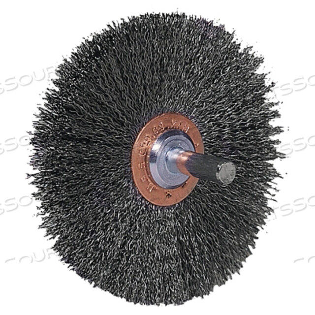 ШИРОКАЯ КОНФЛЕКСНАЯ ЩЕТКА С МОНТАЖОМ НА ШТОК, ДИАМЕТР 3 ДЮЙМА X ШИРИНА 1 ДЮЙМ, ПРОВОЛОКА ИЗ НЕРЖАВЕЮЩЕЙ СТАЛИ 0,008 ДЮЙМА, 20000 ОБ/МИН