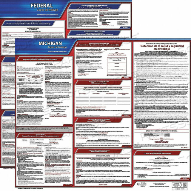 (1) Штат Плакат: Минимальная заработная плата (Закон о возможностях оплаты труда 2014 года), Закон о защите сотрудников от полиграфа (EPPA), Закон о безопасности занятости, Равные возможности трудоустройства — это закон (EEO), Закон об отпуске по семейным и медицинским причинам (FMLA), Безопасность труда и гигиена труда — это закон (OSHA 3165), Job Safe