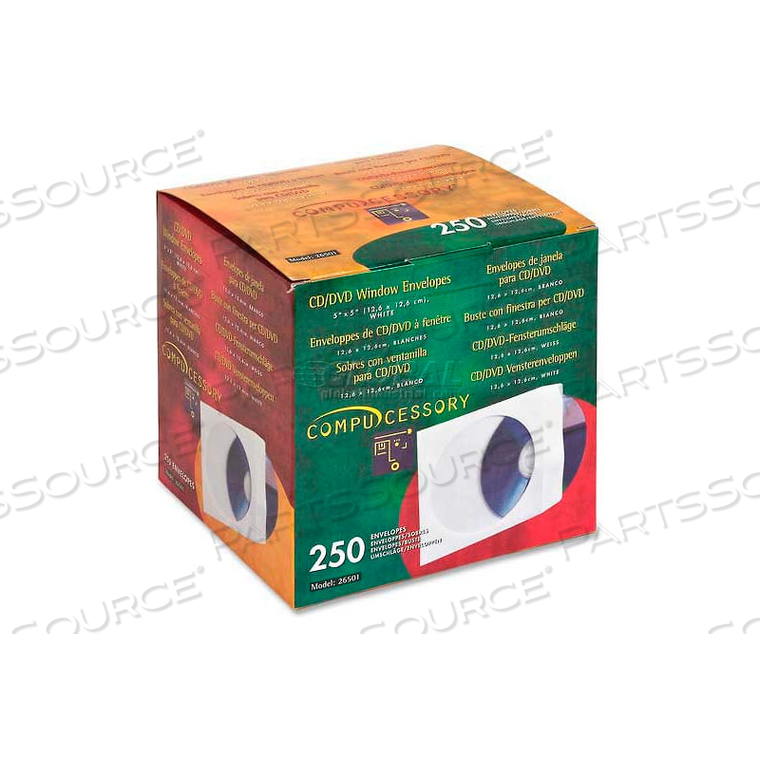 КОНВЕРТЫ С ОКНОМ ДЛЯ CD/DVD, 5 X 5, 250/КОРОБКА, БЕЛЫЕ