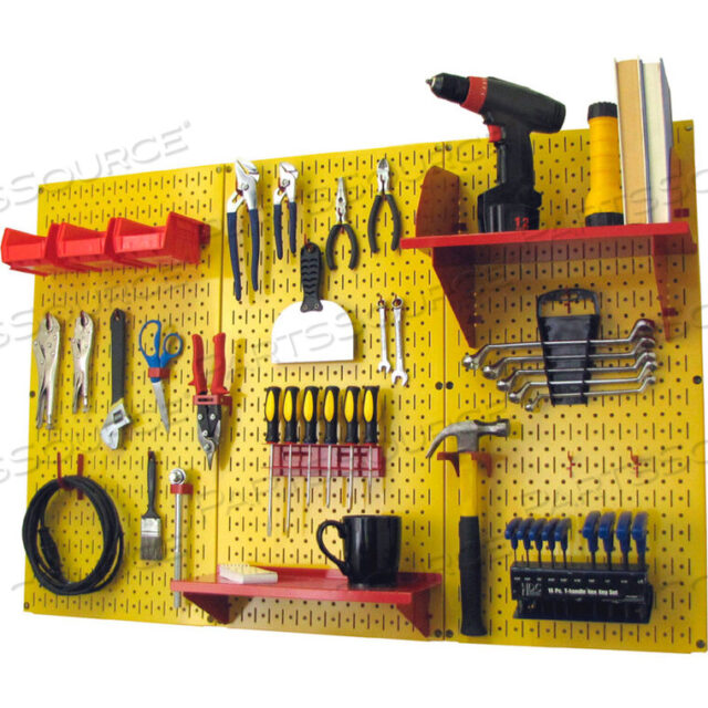 СТАНДАРТНЫЙ НАБОР ДЛЯ ХРАНЕНИЯ ИНСТРУМЕНТОВ PEGBOARD, ЖЕЛТЫЙ/КРАСНЫЙ, 48 X 32 X 9