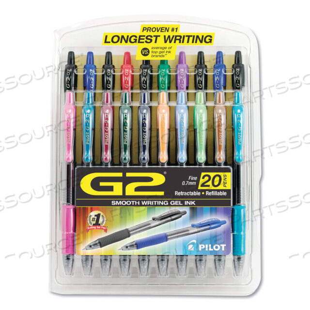 G2 ПРЕМИУМ ГЕЛЕВАЯ РУЧКА, ВЫДВИЖНАЯ, ТОНКАЯ 0,7 ММ, РАЗНЫЕ ЦВЕТА ЧЕРНИЛ И ЦВЕТОВ, УПАКОВКА 20 шт.