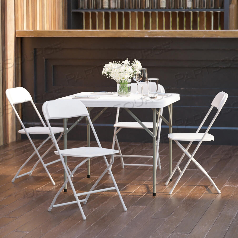 Commercial-grade plastic folding chairs designed to be lightweight but durable. This product is engineered and built with premium materials that will withstand heavy duty use for event, business and home usage. These folding chairs will nest easily to stack 50 high from the floor and feature a textured contoured plastic seat for the highest level of comfort and security. With a variety of color options you can choose what would best pair with your event needs. This is a commercial-grade on-demand seating solution convenient for weddings, school functions, barbecues, game night, and catering events. Stay comfortable during social events with the gentle contour shaped seat and back. Folding chair highlights: - Ready-to-use with no assembly required - Hassle free stackable storage - Textured seat designed for maximum comfort and security - Floor caps to prevent surface and flooring damage - 650LB weight capacity These low-maintenance party event chairs wipe down easily after luncheons and stack neatly for storage or floor maintenance. Make a smart investment by purchasing multiple plastic folding chairs for your rental business, waiting room or corporate training rooms. Purchase our folding chair truck for quick and easy set up and take down.