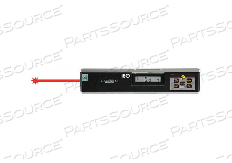 Цифровой дисплей/звуковые сигналы для отвеса и уровня, переключение между углом и уклоном, ЖК-дисплей может вращаться до 180 градусов, наклон в градусах или процентах, самокалибровка на 0 и 90 градусов, которая подтверждается звуковым сигналом, видимый лазерный луч класса II, магнитное основание, 1/4-2