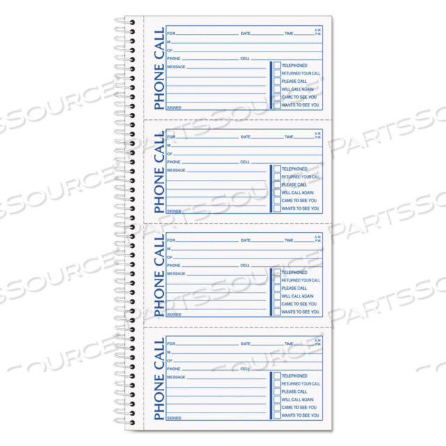 SPIRALBOUND MESSAGE BOOK, TWO-PART CARBONLESS, 5 X 2.75, 4 FORMS/SHEET, 200 FORMS TOTAL