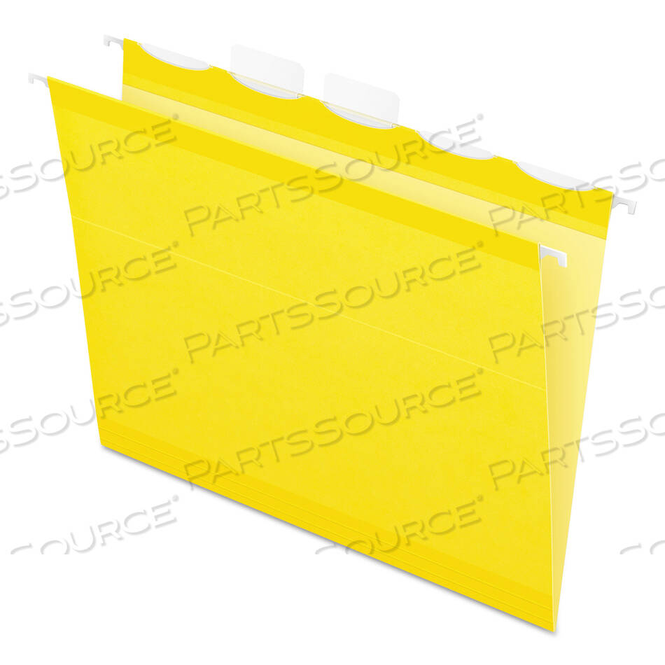 ПАПКИ-ПОДВЕШКИ ЦВЕТНЫЕ УСИЛЕННЫЕ, ГОТОВЫЕ, ФОРМАТ ПИСЬМЕННЫЙ, ЯРЛЫКИ 1/5, ЖЕЛТЫЕ, 25 ШТ./КОРОБКА