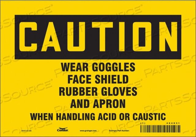 Надевайте защитные очки, защитную маску, резиновые перчатки и фартук при работе с кислотой или едким веществом