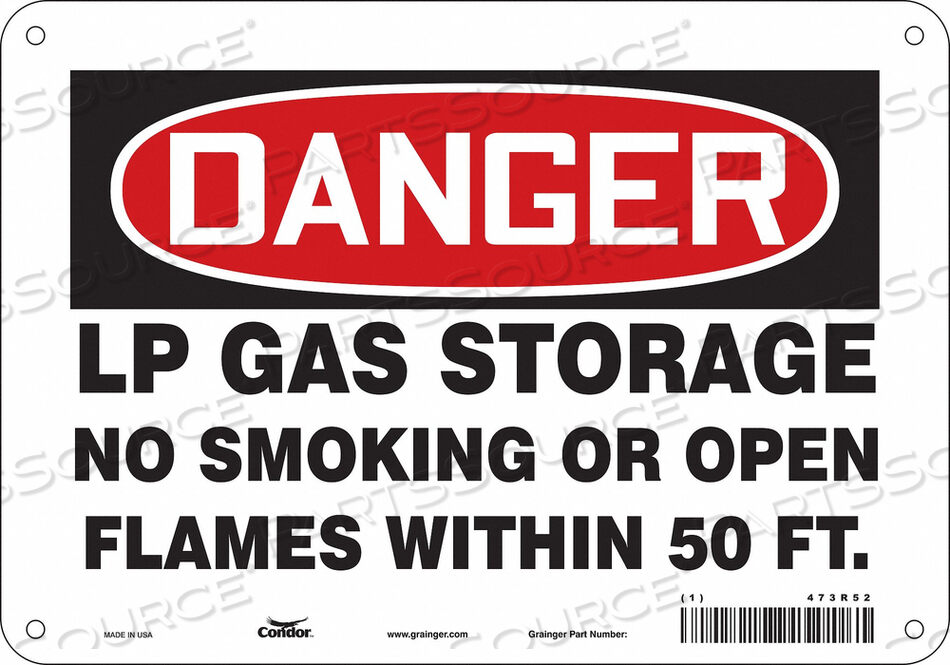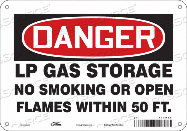 Хранение сжиженного нефтяного газа запрещено курить или использовать открытый огонь на расстоянии менее 50 футов.