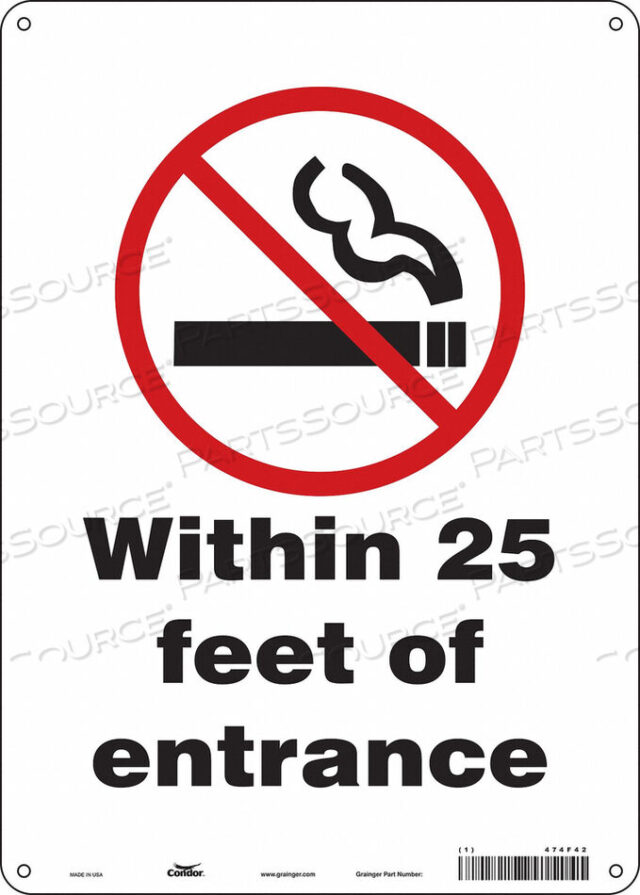 Знак «Не курить» в радиусе 25 футов от входа