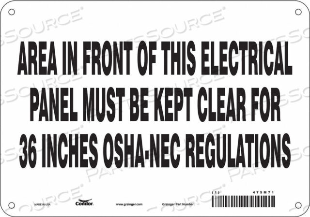 Область перед этим Электрическая панель должна быть чистой для 36 В соответствии с правилами OSHA-NEC