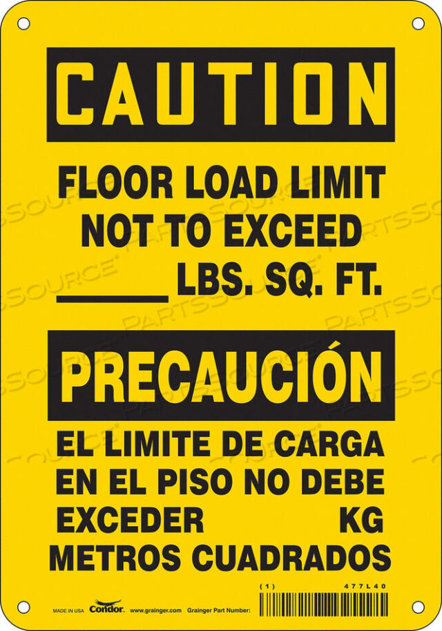 ПРЕДЕЛ НАГРУЗКИ НА ПОЛ НЕ ДОЛЖЕН ПРЕВЫШАТЬ _______ ФУНТОВ. КВ. ФУТЫ/ЛИМИТ ГРУЗОПОДЪЕМНОСТИ В ПИСО НЕ ДОЛЖЕН ПРЕВЫШАТЬ _______ КГ МЕТРОВ КВАДРАДОС