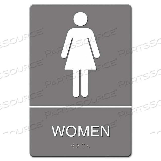 ЗНАК ADA, СИМВОЛ ЖЕНСКОГО ТУАЛЕТА С ТАКТИЛЬНОЙ ГРАФИКОЙ, ЛИТОЙ ПЛАСТИК, 6 X 9, СЕРЫЙ