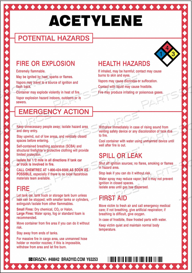 OEM#: 48842CHEM SGN 10 X 7 ДЮЙМОВ BLK/RED/BLE/YLLW ON WHT от Brady Americas