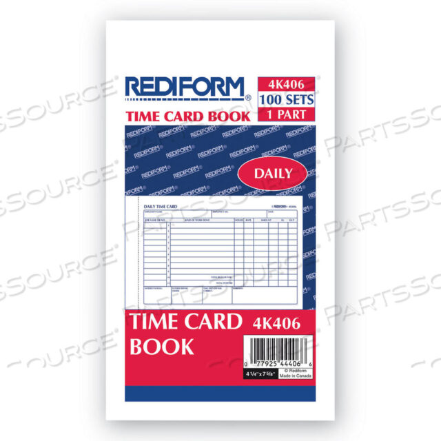 ЕЖЕДНЕВНЫЕ КАРТОЧКИ УЧЕТА ВРЕМЕНИ РАБОТНИКА, ДВУХСТОРОННИЕ, 4,25 X 7, 100 В ПАКЕТЕ